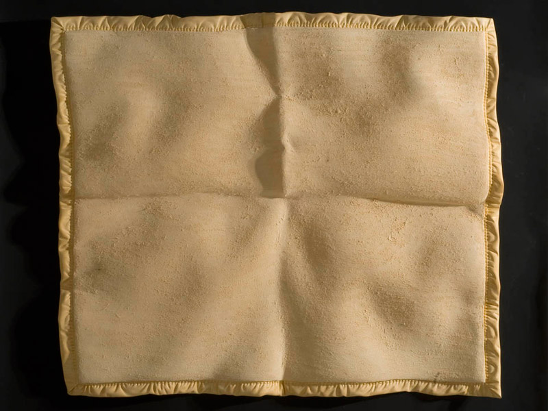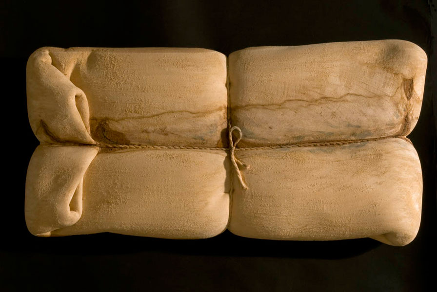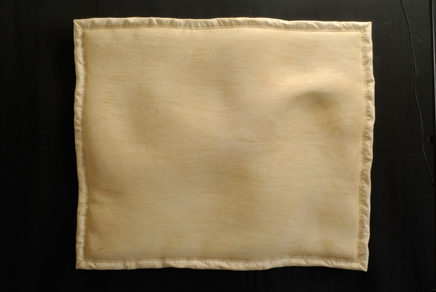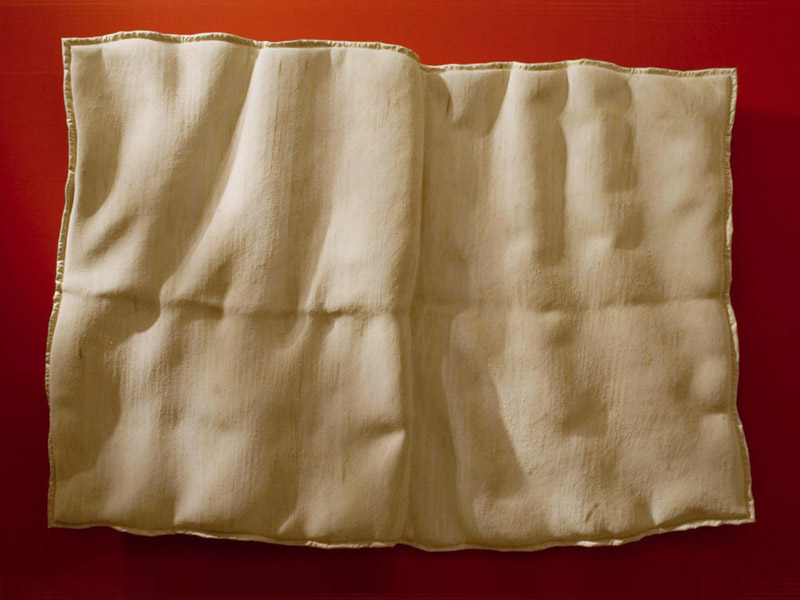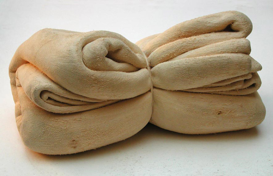 Ce que proposent ces sculptures n’est autre qu’un tendre miroir où le corps se ressent dans le registre qui lui est le plus favorable : c’est tout à la fois une surface, un grain, une chaleur, et la tendresse d’une consistance souple, fluide, suave. Cet énoncé lui-même indique l’ambiguïté que le corps entretient avec cette douce matière des choses, que nous décrivons dans les mêmes termes, avec les mêmes mots qui eussent décrit le corps lui-même, l’autre corps qu’il rencontre, perçoit, caresse ; qu’il respire, dont il s’entoure. Sans doute y a-t-il là la trace ineffaçable de nos premières sensations, notre corps ainsi baigné dans celui de la mère, caressant-caressé… l’incarnation, c’est le cas de le dire, du paradis perdu d’une plénitude. Peut-être quelque chose de ce bonheur originel se retrouve-t-il quand notre corps se ressent ainsi dans un vêtement, un drap, une couverture, objets transitionnels hérités des doudous de l’enfance.