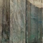 Les surfaces de ces lourds panneaux sont colorées, ou plutôt patinées : diverses nuances de vert et de bleu plus ou moins projetées, avec quelques éclaboussures discrètes de rouge vif. Une telle apparence chargée de la patine du temps contraste très violemment avec la tendre couleur pâle et chaude du peuplier taillé (déchiré, semble-t-il).